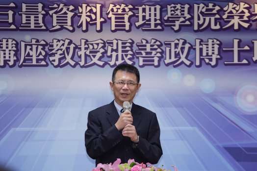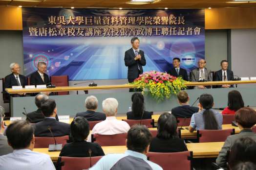 潘維大校長致詞表示,學校於104學年度全國首創巨量資料管理學院,為展現在巨量資料分析與應用方面之學術發展及人才培育的企圖心,巨資學院已延聘五位講座教授:台灣金融研訓院許嘉棟榮譽顧問,資策會大數據所林蔚君所長、中台雲周延鵬執行長、國家政策研究基金會朱雲鵬教授及實踐家教育集團林偉賢董事長,藉以協助東吳大學在大數據航道上,能於不同領域,如資訊安全、金融科技、智慧城市、專利、國際經濟與互聯網創新商業模式等,有更寬廣且深入的發展,此次能再聘請前行政院張善政院長擔任講座教授兼榮譽院長,可謂如虎添翼。張善政博士在擔任行政院副院長期間,特別重視大數據與開放資料(open data)的應用,迄今政府開放資料運用,均有不錯的成果。