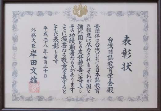 台灣日語教育學會由本校外國語文學院榮譽院長蔡茂豐教授於1993年成立,目前由本校日本語文學系賴錦雀教授擔任理事長,本校陳淑娟教授、林雪星教授、王世和教授、蘇克保副教授擔任理事,賴雲莊副教授擔任常務監事,李宗禾副教授擔任秘書長。由於推動日語教育,增進台灣與日本的友好關係,於2016年7月20日榮獲日本外務大臣表彰獎項,並由學會理事長本校日本語文學系賴錦雀教授代表領獎。