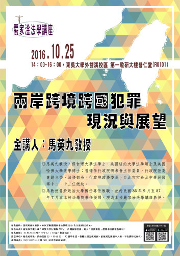 東吳大學嚴家淦法學講座馬英九教授演講「兩岸跨境跨國犯罪現況與展望」