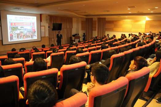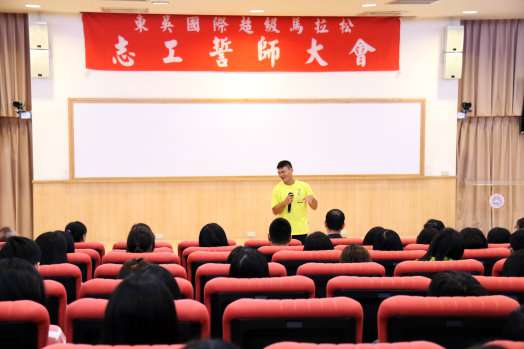 2016東吳國際超級馬拉松志工誓師大會,於11月23日晚間6時30分在外雙溪校區普仁堂盛大舉行,此次誓師大會除了勉勵志工達成志工任務的決心,同時也介紹今年東吳超馬的特色,此外,亦安排來自馬來西亞的「腦麻生命鬥士」曾志龍分享他的跑步人生,藉此激勵東吳超馬志工。