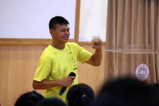 在誓師大會的後半場,來自馬來西亞罹患腦性麻痺的跑者曾志龍分享他與東吳馬拉松的緣分,以及東吳超馬帶給他的人生體悟,也藉此激勵台下學生志工。曾志龍是世界上少數罹患腦性麻痺的馬拉松選手,同時也是腦性麻痺跑者中挑戰24小時賽制的第一人。跑了12年馬拉松的他,在聽完超馬好手林義傑分享24小時馬拉松之後,便以此為目標訓練自己,四年前應東吳超馬賽事之邀,改寫他的馬拉松生涯,今年也是他連續第五年參與東吳超馬。