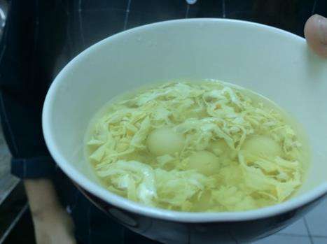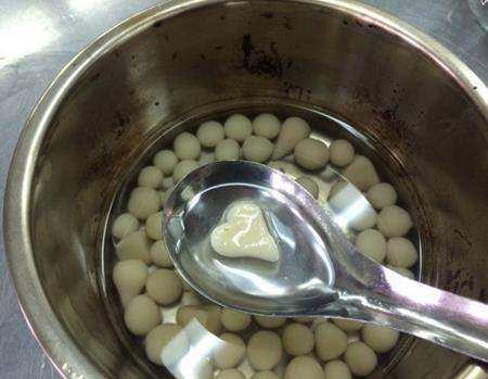 在桂花糖融煮的同時,同學們開始製作湯圓。將量好的麵粉沾水,搓成一顆顆小丸子。把湯圓放進煮滾的熱水後,添加酒釀和剛蒸好的桂花糖,最後再打入蛋花,熱騰騰的桂花酒釀湯圓就完成了。微醺的酒釀在富有嚼勁的湯圓與甜而不膩的桂花香調和下,為寒冷的冬季注入一股暖流。