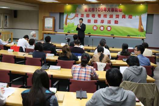 近年來隨著經濟多元發展,生活的環境也遭受到了嚴重汙染,環保議題已成了一項非常重要的世界議題。臺北市環保局於105年8月至10月間辦理大專院校資源回收考核計畫,並在106年1月6日上午10時於本校外雙溪校區的國際會議廳舉辦「資源回收考核頒獎典禮暨觀摩活動」。