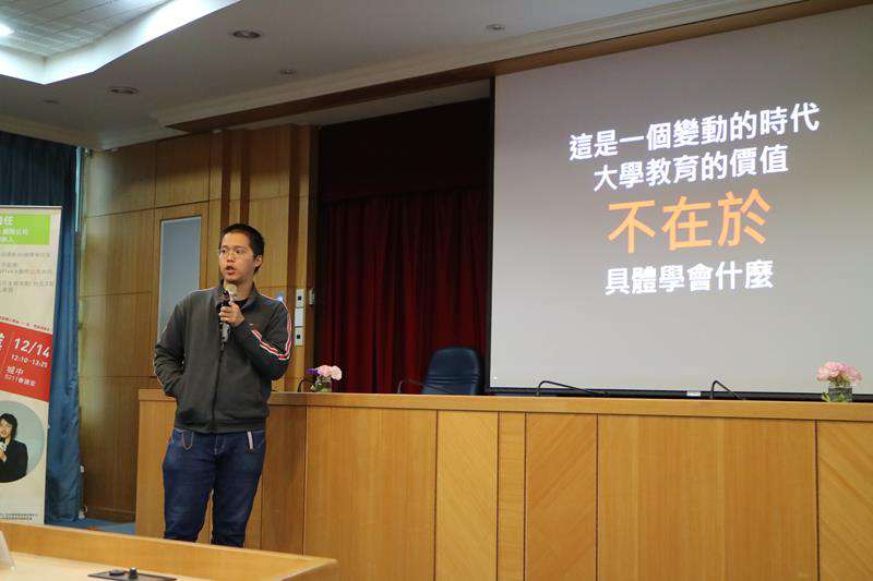 「在你有想要解決的問題,或是你認為你有更好的解決方案,就是時候可以創業了。」游適任替學弟妹解惑,也說出自己開始創業的契機。他是本校法律系101級畢業校友,19歲與同好在大學校園推出「Sharing Wheels分享輪計畫」且創立台灣首個共同工作空間「混」,25歲成為Plan b 顧問公司共同創辦人後開始承接國際專案,26歲在松菸主導策劃「台北文創記憶中心」展覽。上個月剛出席香港Taiwan Redesign,游適任在本次講座則是分享了正體字博物館以及記憶中心的籌辦內容。