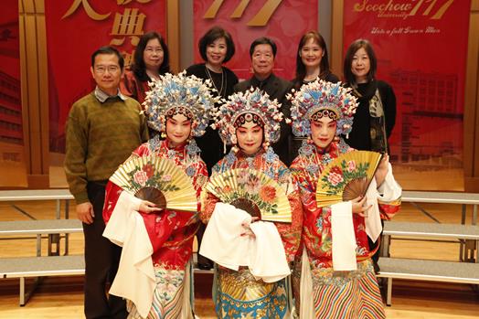 典禮中特別安排校友弦誦合唱團及校友京劇社演出,校友弦誦合唱團本次陣容加入潘校長這位唱將,一同獻唱耳熟能詳的「秋蟬」、「玫瑰玫瑰我愛你」,現場氣氛熱烈高漲。接著演出的校友京劇社,為學校早年盛極一時社團,社友們畢業多年,忙於各行各業,但仍然愛好不減,經常聯繫,期盼有機會再續前緣。104年2月7日,老友聚會,再度發起成立校友京劇社。因此本次回母校首演,特意精心挑選著名的京劇名段,如「貴妃醉酒」、「鍘美案」、「龍鳳呈祥」等,舉手投足間細膩生動,博得滿堂喝采。