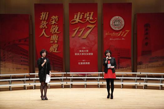 主持人王淑芳社會資源長特別準備2016年回顧簡報,向校友及捐款人報告過去一年東吳大學的變化與革新,並對校友及各界無私的捐輸,獻上最誠摯的感謝。同時,也特別感謝為東吳辛苦奔走的勸募之星,如:校友總會、美國東吳之友基金會、地區校友會與系友會。未來也希望透過校系友會與班級聯絡人的力量,找回更多的校友,成就更美好的東吳。