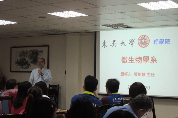 同時,活動上也秀出趙維良老師、曾惠中老師、黃顯宗老師以及宋宏紅老師4位「元老級」教師當年照片,在今昔對比下,竟是帥氣與美麗不減當年!老師們也紛紛上台,如數家珍般回憶起當年學長姊在學情景,氣氛溫馨有趣!而後,由微生物系主任張怡塘介紹學系現況,並說明目前系友們參與系上各種活動情形。