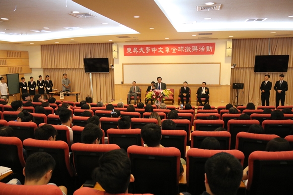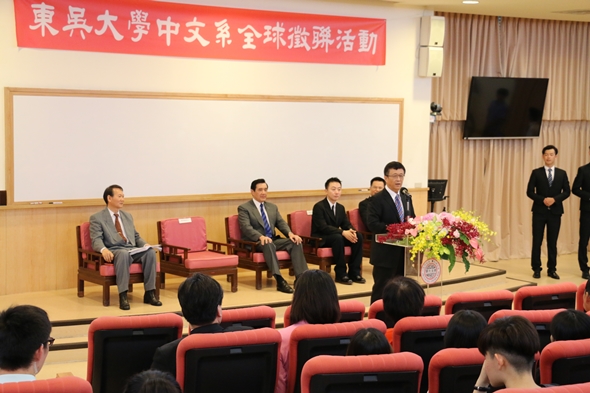 2016年欣逢本校中國文學系60周年系慶,特舉辦「2016全球徵聯活動」,以前總統馬英九在2011年於高雄漁港所出上聯「秋刀出鞘漁民笑」為題,公開向全球愛好對聯的風雅人士徵求下聯。「東吳大學中文系全球徵聯頒獎典禮」於(今)106年6月7日下午在本校外雙溪校區第一教研大樓普仁講堂舉辦,特別邀請前總統馬英九蒞臨揮毫並頒發首獎。