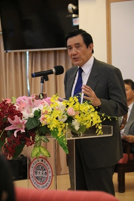 東吳大學中文系2016全球徵聯活動頒獎典禮 馬前總統揮毫首獎作品「春劍歸山蘭客歡」
