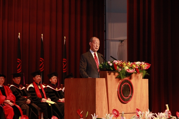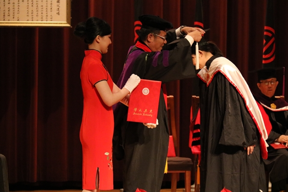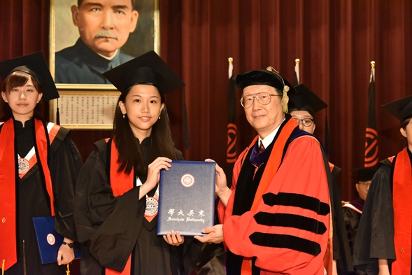 潘維大校長勉勵畢業生多「珍惜」生活點滴中的人事物,進而於行動言語中體現關懷精神,從家人朋友擴及至社會國家。董事會王紹堉董事長則強調,語文在人類文化進步史中的重要性,「物以稀為貴」,只要精通多種語言,必能提升自我價值,更期勉同學畢業之後,把握學習機會,持續追求新知。