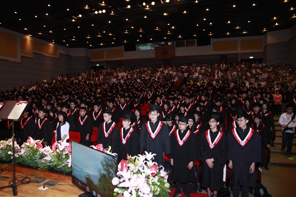 本校105學年度畢業典禮於6月10日和6月11日在外雙溪校區傳賢堂舉行,一連兩日共有六個場次,邀請各學系師生、家長和校友們共襄盛舉,首日登場的是外語學院、法學院與商學院。本校董事會王紹堉董事長、校友總會劉吉人會長(富蘭克林投顧創辦人)等人蒞臨現場,向畢業生送上溫暖的祝福。