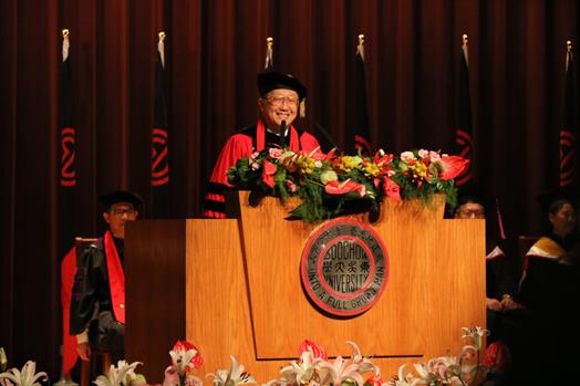 校友總會劉吉人理事長則以「當知識之圓擴大之時,所面臨的未知的圓周也一樣。」勉勵畢業生勇於求知、善用巨資課程優勢,並以東吳校訓「Unto a full-grown man(養天地正氣,法古今完人)」期許自己成為領導之全才,以天下為己任。