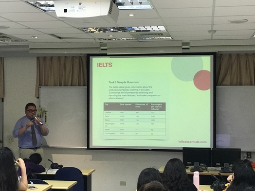 畢業季即將來臨,學生除了開始找工作之外,也有一部分選擇繼續升學。而在投遞履歷或是申請學校時,不少人會附上英文證照。本校語言中心這次特邀台灣雅思官方考試中心總經理張效岳先生,於5月24日在城中演講,讓同學們對雅思有更進一步的了解。