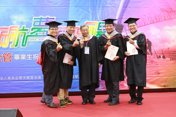 典禮由本校音樂系學生以弦樂四重奏揭開序幕,多位貴賓、系友、師長及家長親臨現場,給予畢業生祝福與勉勵。當天特別邀請到企管文教基金會胡金晶副董事長(88級畢業校友)致詞,與同學們分享自己畢業後的人生風景。在工作遭遇瓶頸、感到氣餒無助時,胡金晶學姊深刻體會到「相信就看得見」這句話;胡學姊說道:「未來人生的道路上,大家一定會遭遇許多困難與挫折。在這樣的時刻,唯有持續地相信自己,最終必能看到前方的曙光。」另外,胡學姊也與畢業生分享東吳企管文教基金會大家長李明山董事長的一席話,李學長曾經說道:「一個學校、科系之所以被人尊敬與稱頌,不是因為它有美麗的校園或精彩的課程,而是因為它孕育出一群成功的校友!」胡學姊也期許各位畢業生能常回東吳企管大家庭敘舊,讓美好的緣分延續傳承。