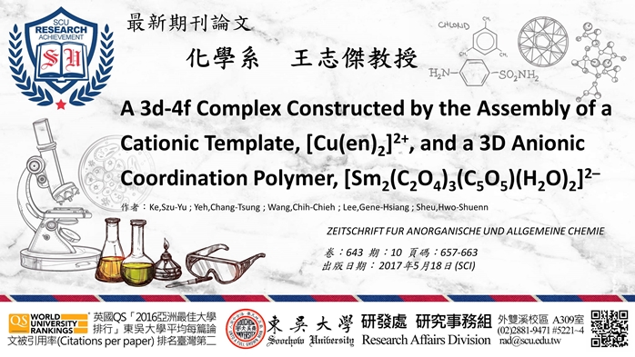 ZEITSCHRIFT FUR ANORGANISCHE UND ALLGEMEINE CHEMIE,卷:643 期:10 頁碼:657-663,出版日期: 2017年5月18日 (SCI)