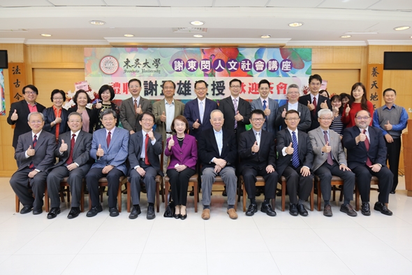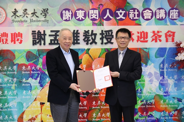 本校106學年度禮聘謝孟雄先生為東吳大學謝東閔人文社會講座教授,於106年11月21日(星期二)上午10時在城中校區舉辦禮聘暨歡迎茶會。謝孟雄先生曾任台北醫學大學校長、實踐大學校長、北京大學客座教授及監察委員等職,現任實踐大學董事長、董氏基金會董事長,關心教育、關懷社會不遺餘力。