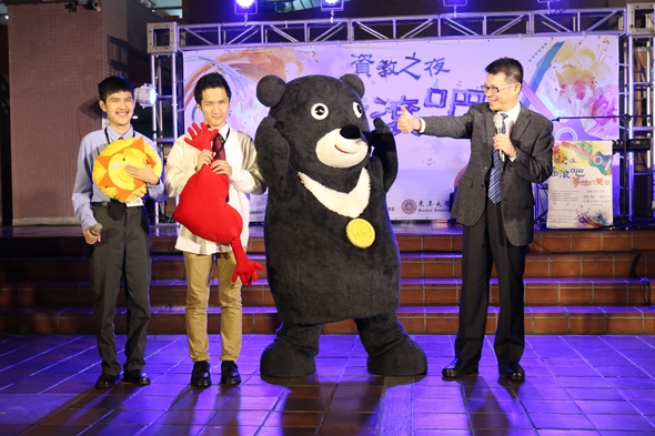本校健康暨諮商中心於106年11月29日舉辦「資教之夜音樂發表會」,吸引近百名師長及同學蒞臨觀賞。本次活動特別邀請台北市政府吉祥物「熊讚」擔任開場的神秘嘉賓,除了和師長們一同跳時下最流行的抖肩舞,更豎起大拇指告訴大家,東吳身障生真的是「熊讚」!