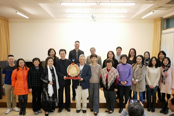 曾任孫教授教書時期的助教,現任音樂系秘書林秋芳學姊亦特別感謝孫教授,她表示,孫教授就是位熱心的學長,對她十分照顧,且為善不欲人知,對學生視如己出,是音樂系的靈魂人物之一。最後,由音樂學系彭廣林主任代表致贈「春風化雨」金盤一座,感謝孫老師對音樂學系的服務與貢獻,校友總會劉總顧問代表校友總會致贈鮮花,場面溫馨感人。