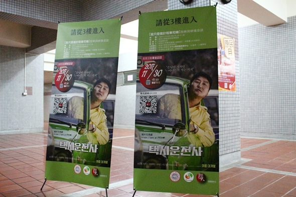 由本校社會系何撒娜教授主持的韓國週系列活動《我只是個計程車司機》電影座談會,於2017年11月30日晚上在本校外雙溪校區傳賢堂盛大舉行,特別邀請中華民國韓人會任炳沃會長及在台光州青年申聖贊同學一同觀賞電影互相交流,現場熱鬧非凡。