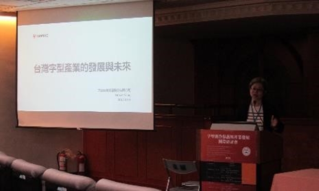 首場,邀請文鼎科技楊淑慧董事長開啟本次研討會主講,報告題目為「台灣字型產業的發展與未來」,楊董事長表現出文化人而非商業人的氣息,利用投影幕文字與手機顯示文字之比對顯示印刷文體可讀性之差異。