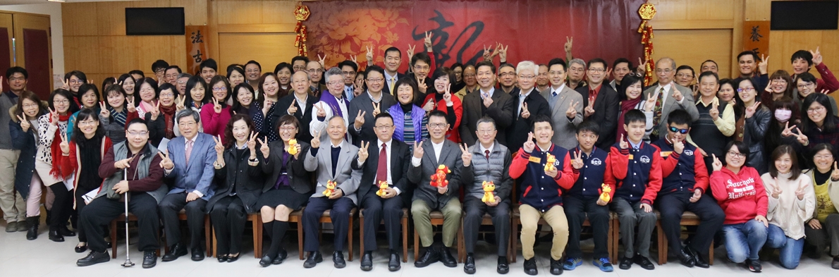 本校於107年2月26日開學日舉辦新春團拜,潘維大校長、趙維良副校長及董保城副校長率領校內100多位教職員齊聚城中校區2123會議室互道恭喜、祝賀平安,迎接2018狗年新氣象。