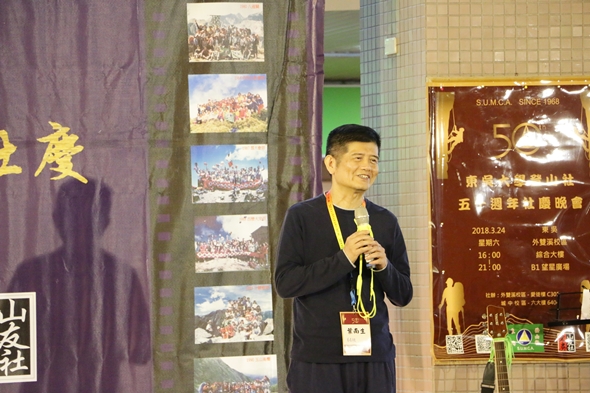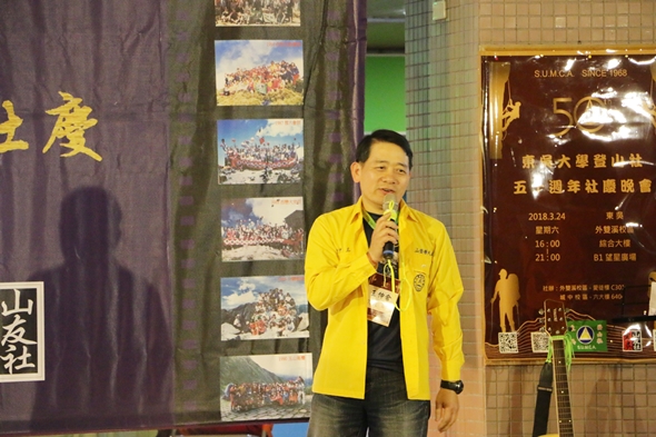 潘維大校長因公務無法出席,特別拍攝影片表達祝福,他表示,自己相當熱愛登山活動,在東吳就學時也是登山社的社員。而曾擔任過登山社第三屆社長的董保城副校長熱情歡迎校友們回娘家,並勉勵與會校友,人生就像登山一般,要翻過一座又一座高山,並且不斷的超越心中設下的巔峰。