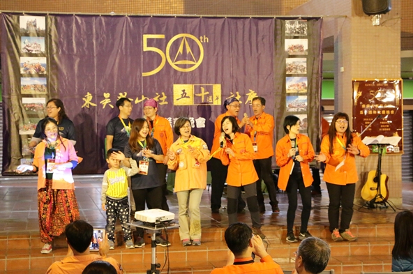 晚會中,有來自遠方校友的祝福影片、校友的懷舊戲劇演出及山歌教唱等節目輪番上陣,並頒獎給完成百岳及小百岳挑戰的校友們。其中,還有多位學長姊分享在登山社出遊時的趣聞及自己在登山社的點點滴滴,他們皆非常感謝草創時期的社團學長姐們,總是以愛護之心無私提供設備傳承給學弟妹使用,互助精神無形中在登山社綿延傳承下去。