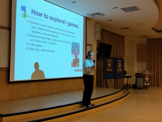 演藝經驗豐富的「蕭爸」蕭忠文先生,為了學習表演及肢體語言,自己透過武術、街舞、演戲等方式,接觸多元的表演媒介與表達技巧,也曾參與許多節目的錄製,包含韓國的綜藝節目、泰國廣告及微電影等。「蕭爸」分享多項表演心法,包括身心放鬆、專注、信任、想像、模仿、創造,並帶領現場觀眾進行肢體語言的互動練習,強調人際關係與表演之間的關聯,說明肢體語言在戲劇中的重要性。