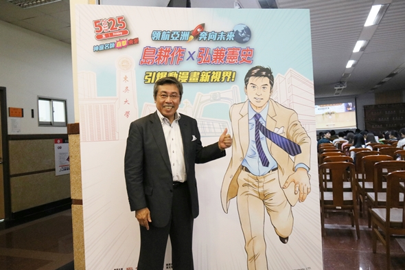本校圖書館、日文系及渥美國際交流財團關口全球研究會(SGRA)為探討動漫畫文化風靡全世界的奧秘及展望動漫畫文化的前景,很榮幸的邀請到日本神級名師漫畫家《島耕作》系列作者弘兼憲史老師於5月25日(五)下午在本校外雙溪校區普仁堂以「弘兼憲史x漫畫x學習不思議~漫畫教會我的事(日文題目:漫画から学んできたこと)」為題,分享其漫畫創作的心得,現場吸引上百名漫畫迷一睹弘兼憲史老師風采。