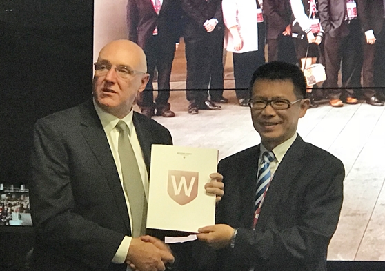 這次大會主席澳洲西雪梨大學校長葛班尼教授(Professor Barney Glover)說明,本屆論壇主題是「創新式學習、教學及學生參與」,活動特別在西雪梨大學的旗艦立體校園,彼得.史高德大樓(Peter Shergold Building)舉行,相當具有意義。這是西雪梨大學在2017年開設的商學院大樓,位處西雪梨大學市中心,造價不斐,全棟大樓以教學工作坊(studio)設計,沒有傳統教室,只有最新科技所建構而成的行動教室。除白板牆、移動桌椅外,還有移動的液晶電視螢幕、隱藏在天花板的麥克風等,提供開放且彈性的空間,讓教師與學生可由各種做中學的討論中,學習最新商學管理議題。