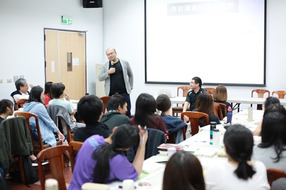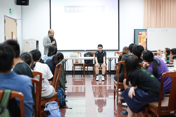 本校健康暨諮商中心於5月15日晚上邀請培果工作坊的首席講師曾培祐老師,於雙溪校區R0112戴式基金會,舉辦「一定要會的能力─表達、聆聽、說服力」同儕輔導知能講座。