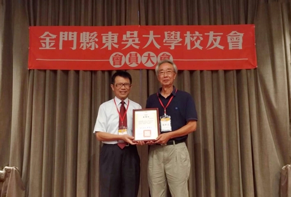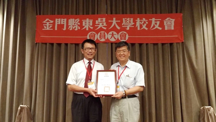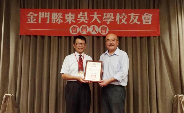 金門縣東吳大學校友會於民國90年6月14日成立,迄今已17年,潘校長及校友總會特別頒發感謝狀予張雲土創會會長(歷史系66級)和李成義前副會長(英文系73級),感謝他們對校友會長年的奉獻與付出。此外,潘校長頒發當選證書及代表校友總會頒發會員證書予葉肅科會長,感謝葉學長願意接下金門縣校友會之重擔,協助母校發展,為金門縣校友及學子服務,任重道遠,潘校長亦期許在優秀幹部團隊的努力下,金門縣校友會將會更加蓬勃壯大!