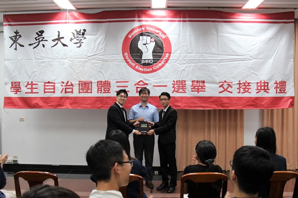 學生自治研習營除了講座、分組討論外,還於戴氏基金會會議室舉辦了「學生自治團體交接典禮」,學務長蕭宏宜、群美中心主任廖芝萱等師長出席了典禮,並見證學生自治法規交接與各系學生會會長印信交接。希望新一屆幹部們不負學校與學生的期待,在服務他人的同時實現自我成長。