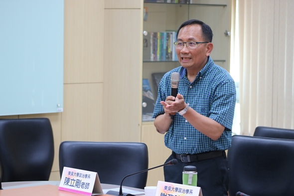 本校政治學系於107年7月30日辦理「系主任交接典禮暨茶會」,感謝陳立剛主任這三年以來為政治學系的孜孜付出,讓政治學系在國際交流發展與跨領域教學上有著良多的發展,而在面對國際社會越來越多元且快速的挑戰環境中,劉書彬主任未來也將帶領整個政治學系向前邁進,更進一步突破。