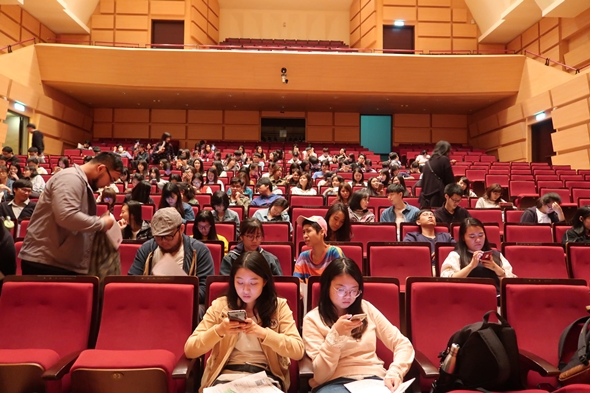 演出結束後,演員們來到舞臺前和同學們分享讀劇計劃的意義。女主角表示,讀劇的形式使演員沒有背台詞的壓力,反而能夠更加集中精力在表演的互動性上,能讓劇本角色更真實地互相交流。同時,這種擺脫了模式化背稿的演出方式讓每場演出都呈現出不同的狀態,觀衆反應也為現場營造獨特的氛圍,相輔相成,一同進行藝術的再創作。