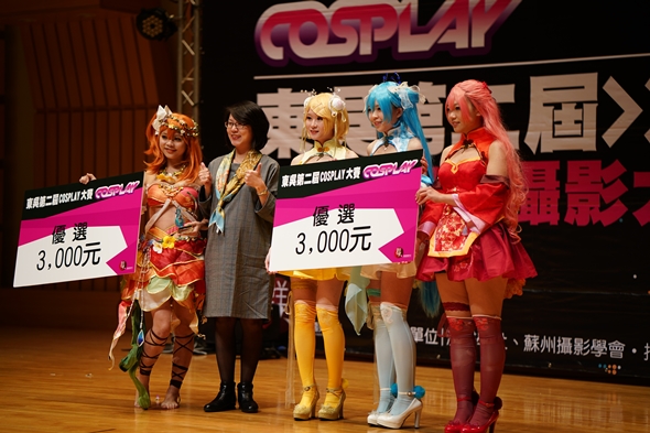 30組參賽者輪番上陣,每組COSER化身不同角色,載歌載舞,以舞蹈、音樂與戲劇結合動漫文化,展現精心努力準備的成果。最終,COSPLAY大賽由「花貝兒」所扮演的神仙教母奪得冠軍寶座,第二名及第三名為「拍子~BSG~」及「將將將狗」,優選獎則是「小瑜兒Emma」和「Camellia」獲得,來自各地的COSPLAY好手齊聚東吳,勇於站上舞台發揮自我,傳播對夢想永不放棄的堅持,令人敬佩。