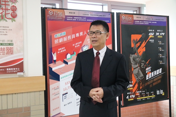 潘維大校長於致詞中表示,因應數位科技時代,國際教育逐漸興起線上學習風潮,東吳自99年度推動遠距課程以來,持續強化相關各種軟硬體設備器材,期待提供最優質的環境輔助老師們投入數位教材製作。延續105年建置D0507多媒體攝影棚之後,教學資源中心為提供更優質的拍攝環境,特別於今年建置一間更專業的虛擬攝影棚,以利老師們於翻轉教學、情境學習及創新教學等應用,讓新世代的教學與創新,打造師生共同成長的教育創造力,有效活化傳統教學。