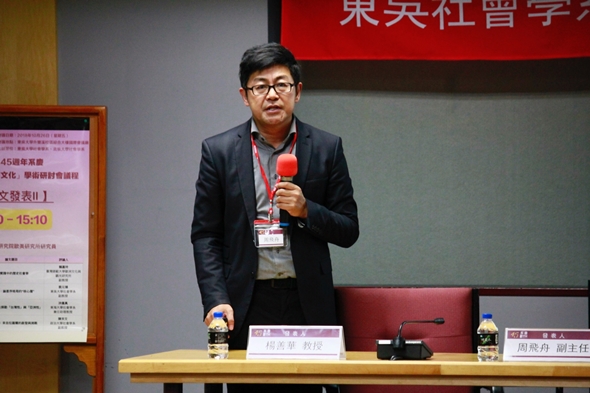 主題演講由社會系張家銘教授主持,聚焦楊懋春先生,分別由北京大學副主任周飛舟和本校名譽教授蔡明哲論述。研討會中一共有三場的論文發表,從兩岸學者發表的論文題目、內容中可以看出社會學界中學術的質量與研究對象的多元性,社會學從古典社會學出發,北大孫飛宇副教授談到了涂爾幹的自殺論,認為自殺這個行為可能同時意味著自我保存的概念,是由使用者自願的,也可能是現代人的一種需求,除此之外論文發表中也討論到了當代理論、新馬電影甚至是性工作的分析等等的主題,如石計生主任從批判福柯、李歐塔的能量吸血主義,中國人沒有倫理主體出發,比較德勒茲根莖論和丹道身體發展出道家社會學論點;北大楊善華教授認為一個社會行動包含了,行動者如何賦予社會行動意義,還有而我們怎麼理解這種行為,我們所有的現實,都包括了過去在內,我們在現場時,都是把過去帶進現場的,如出席正式的場合我們會著正式的服裝。賴嘉玲教授認為口述歷史和田野調查對歷史社會學有一種撥亂返正的效果,不論是性別或是其他面向,可以從小人物的故事看出不同的權力關係,在大歷史的敘述中可能是不被提及的。