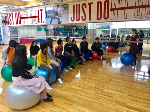 老師透過在劇團受過的訓練讓同學認識自己的身體,舒展筋骨活絡四肢,感受與身體的對話,放鬆心情面對真實的自己。老師說要在舞台上展現出魅力最重要的就是要「認識自己、認識身體、認識聲音」;透過聊天談談自己的現況,讓同學能重新摸索自己,再藉由伸展肢體,讓同學對自己的身體以及表演有了新的認識。