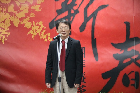 潘維大校長致新春賀詞時表示,「家」這個字是屋中有豕,所以學校今年設計的紅包袋,是一隻小豬走入校門的圖案,合起來即為「家」的概念,東吳就像一個大家庭,彼此相互扶持。此外,更強調每所大學都有不同程度的問題與困難,在學校改變的陣痛期,期許大家共同面對;趙維良副校長祝福在座教職員工身體健康、諸事如意;董保城副校長提及,十二生肖中大都有角有爪,唯獨豬沒有,象徵著以「圓融」的態度,去面對任何困難;各學院院長也祝願大家在新的一年諸事大吉、萬事如意。