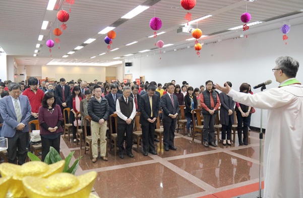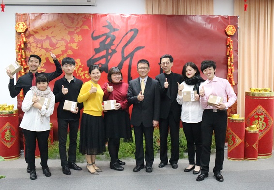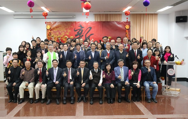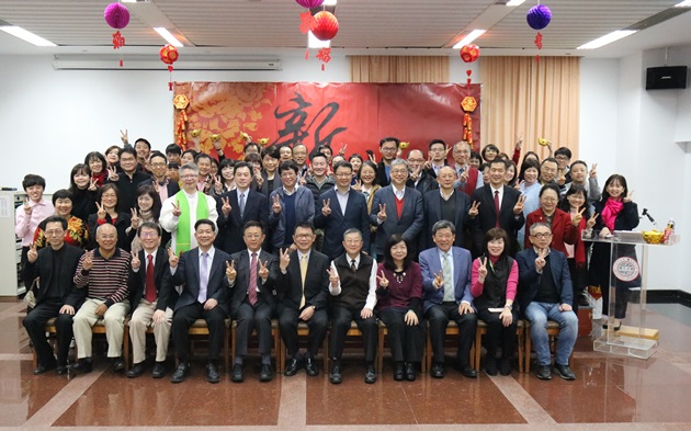 本校108年2月12日在外雙溪校區戴氏基金會會議室舉辦新春團拜,潘維大校長、趙維良副校長及董保城副校長率領校內近200位教職員工相互祝賀,喜迎豬年。