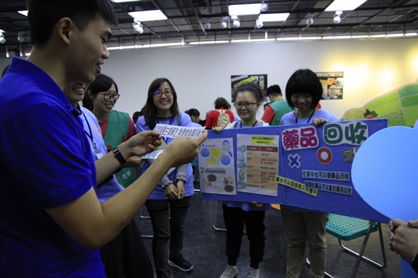 本次公益活動在恩物協會夥伴的帶領下,師長及校友們一起學習正確「藥品回收」知識,過程中並藉由遊戲互動方式,以及反思討論,更加瞭解藥品隨意棄置對環境造成的汙染的重要性。雖然因雨勢過大,未能至街頭宣導,但不減大夥的熱情。