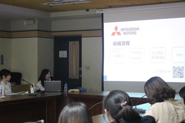 最後,潘顧問針對在場同學的需求,介紹3家不限任何科系徵才的企業及詳細面試流程。分別為全球第6大汽車生產商日產汽車( NISSAN MOTOR CORPORATION)、三菱汽車(MITSUBISHI MOTORS),及日本住宅開發地產公司Hoosiers株式會社。3家企業皆提供綜合職的職缺,「綜合職」係指不指定部門及職位,讓新進人員能夠多方嘗試,找到屬於自己的位置,十分適合來自不同科系、具有不同專業的學生前來挑戰。相信透過潘顧問提供的資訊,使有意願赴日求職的學生,能更確定自己的方向,且朝著自己的理想目標持續邁進。